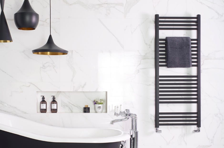 One slight drawback to achieving this bathroom trend in your own home is that because this is a new trend there isn't an abundance of black radiators on the market in the UK right now. The simple way to get around this is to opt for an anthracite radiator instead.